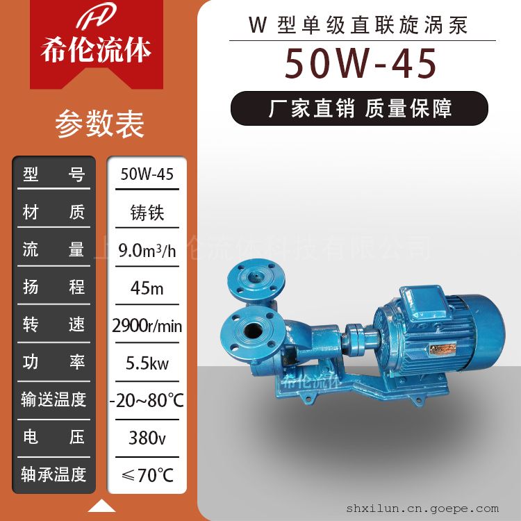 详细信息| 询价留言品牌:希伦 材质:铸铁 驱动方式:电动 流量:9 m3/h 叶轮数目:单级 扬程:45 m 转速:2900 rpm 轴功率:5.5 kw 吸入口径:50 mm 排出口径:50 mm 型号:50W-45 吸入口径:50 mm -