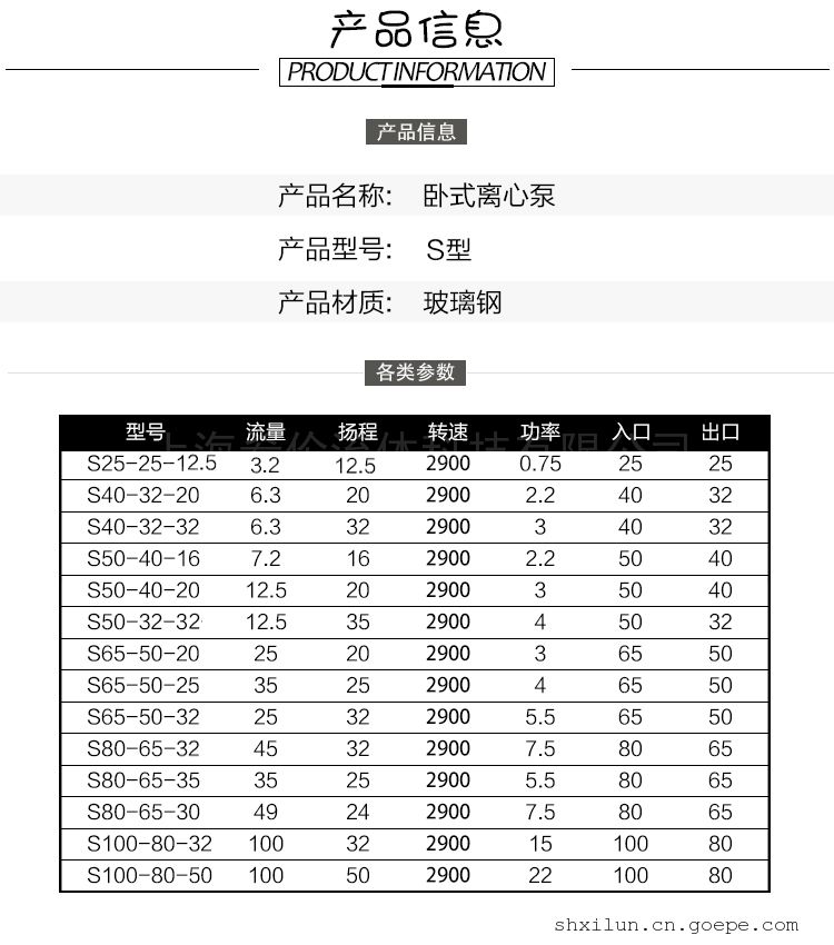 详细信息| 询价留言品牌:希伦 材质:玻璃钢 性能:耐腐蚀 扬程:20 m 泵轴位置:卧式 叶轮结构:封闭式叶轮 叶轮吸入方式:单吸式 流量:6.3 m3/h 叶轮数目:1 汽蚀余量:2.3 m 轴功率:1.1 kw 吸入口径:40 mm 排出口径:32 mm 型号:S40*32-20 吸入口径:40 mm -